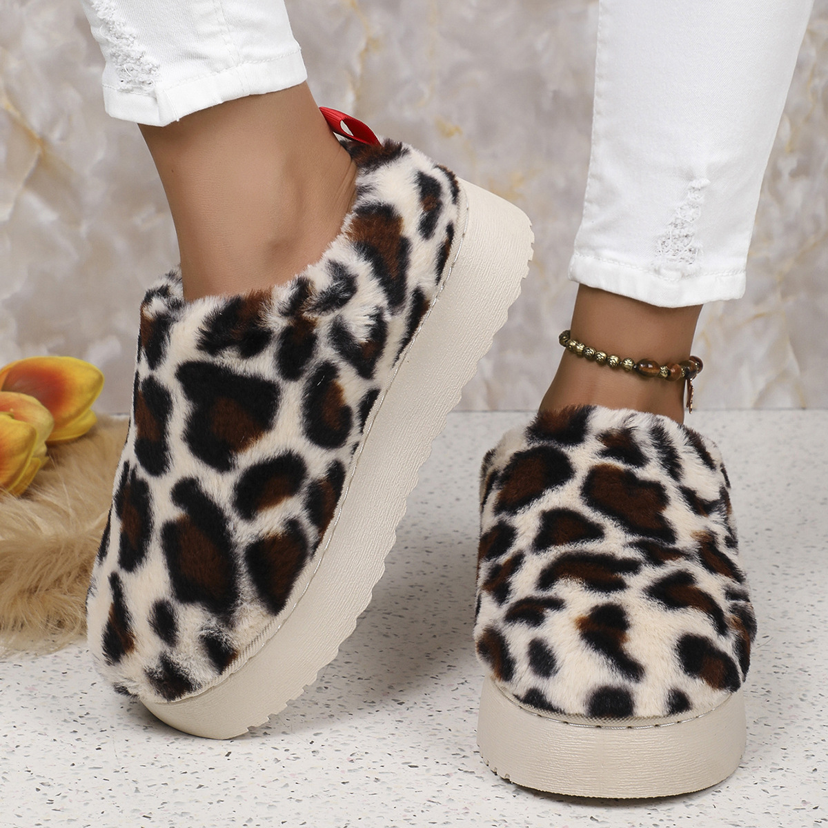 Damenschuhe, neue Schneestiefel mit niedrigem Schaft und Leopardenmuster, mit dicken Sohlen, Schneeschuhe aus Baumwolle