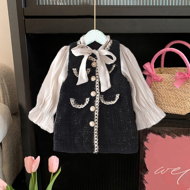Xiao Xiangfeng Gefälschte Zwei Modische Mädchen Kleider 2023 Herbst Neue Baby Woolen Gespleißt Gerade Prinzessin Rock_voghion.com