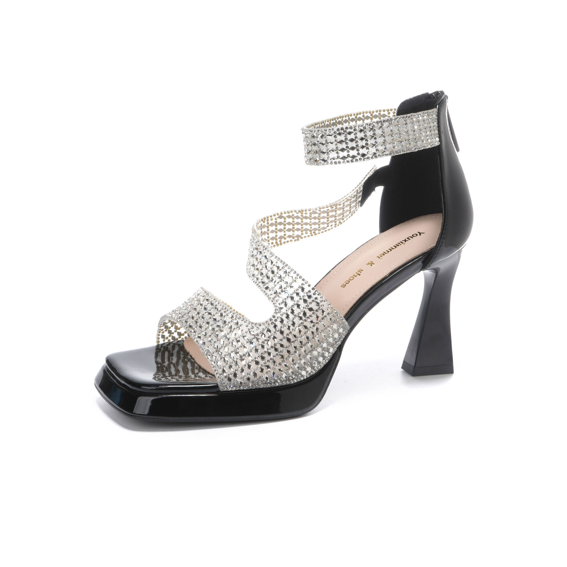 Y5751 Summer New French Style Rhinestone Open-Toe Waterproof Platform Sandals Thick Heel Comfortable High Heels Closed Back