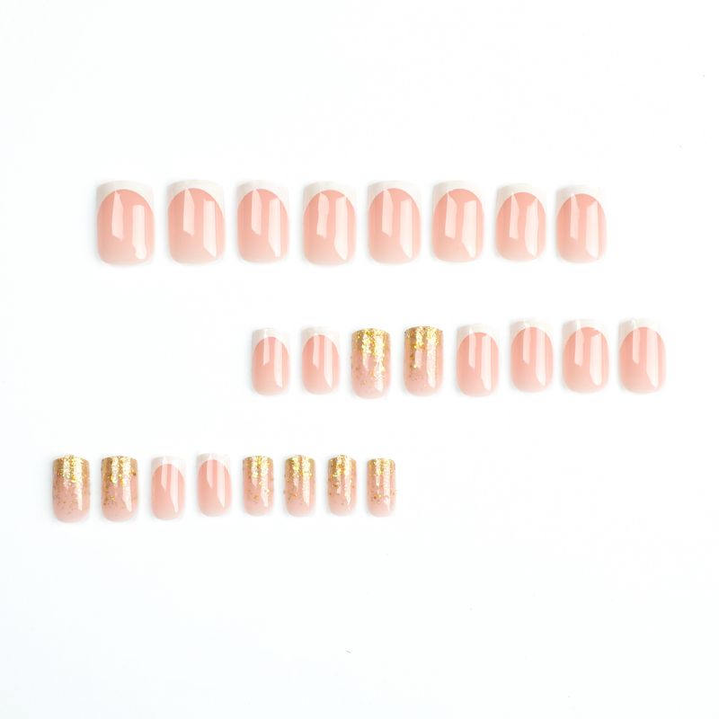Yiwu Nail French White Edge Wearing Nail Panel False Nail Golden Shining Powder Nail Panel Wearing Nail Panel