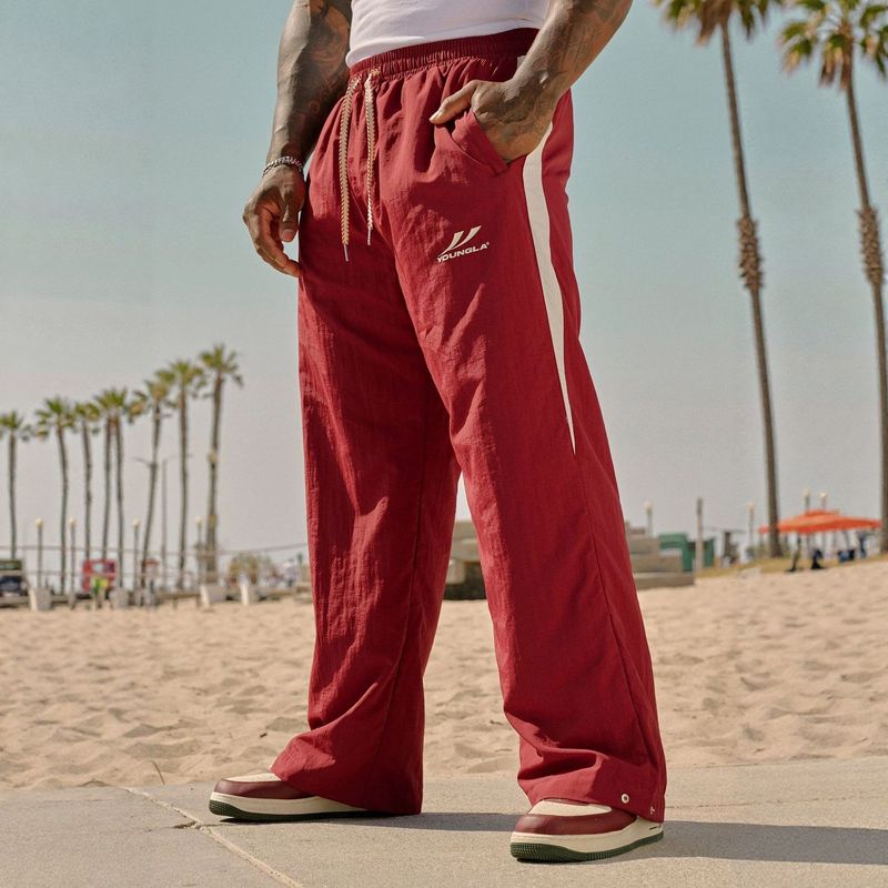 YOUNGLA American Style New Jogging Sports Fitness Men's Sweatpants Loose Casual Wide Leg Trendy Patchwork Long Pants