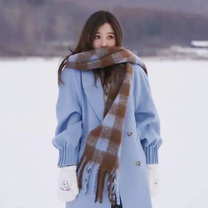 Yu Shuxin Same Style Mohair Large Plaid Scarf for Women Winter Warm Thick Versatile Tassel Large Shawl Neck Warmer