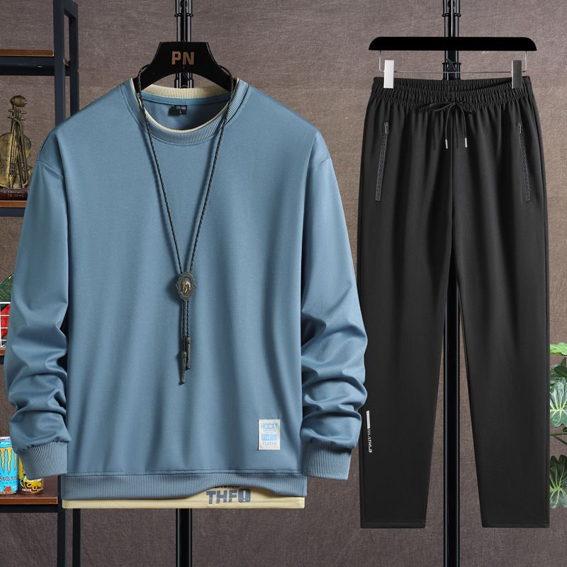 Zhi-2024 Neues Herbst/Winter-Freizeitsport-Zweiteiler-Set für Herrengesundheit und Jugendliche mit Rundhalsausschnitt