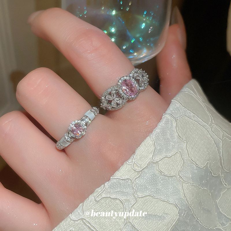 Zirkon-Perlmutt-Ring in quadratischer Blume, offener französischer Stil, eleganter Ring für den Zeigefinger, leichter Luxus, hochwertiges Tragegefühl