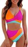Zweiteiliger Badeanzug in Kontrastfarbe für Damen, Träger, überkreuztes BH-Oberteil, Badeanzug für den Strandurlaub, Bikini-Set für Damen
