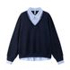 Fake Two-Piece Color Block Plaid V-Neck Sweatshirt Niche Design Spring and Autumn Trendy Men's Turn-Down Collar Pullover