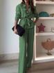Zweiteiliges Outfit für Damen: Langarm-Hemd mit Button-Down-Kragen und Hose mit weitem Bein – lässiger, bequemer Anzug in reiner Farbe