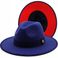 Zylinder aus Wolle mit Unisex-Rand, beidseitiger Filzhut mit Farbblockierung, Jazzhut mit flacher Krempe für Damen, beliebter zweifarbiger Hut in Marineblau und Rot für Herren